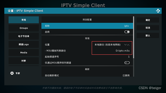确定完成后,关闭Kodi。只有再次进入才能生效。